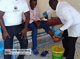 Our professional and experienced Doctor is performing emergency Wound treatment to the less privileged.